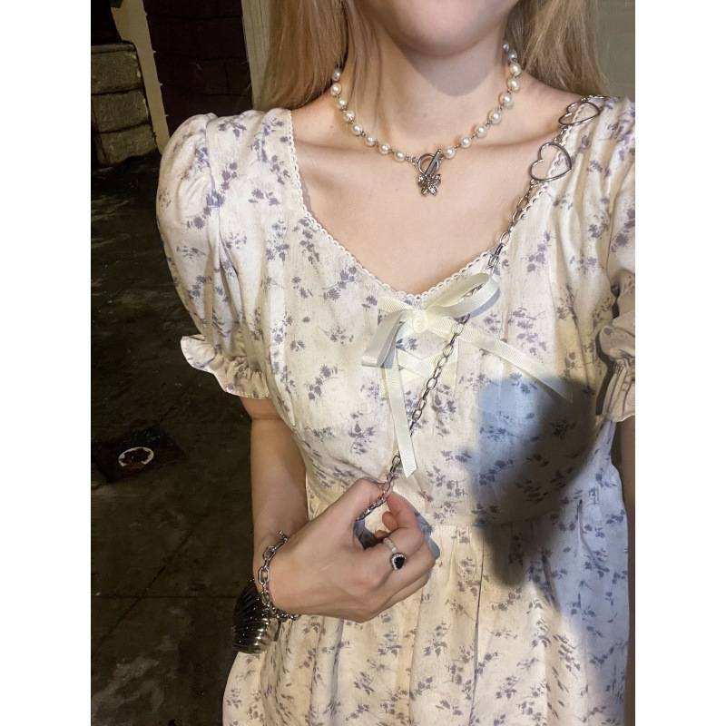 2022夏季新款温柔欲韩版碎花连衣裙女法式泡泡袖收腰显瘦雪纺裙子 120.00 已售:0件