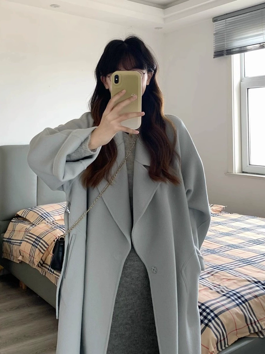 2020秋冬新款女保暖羊毛大衣色羊毛简约文艺毛呢大衣双面呢宽松潮