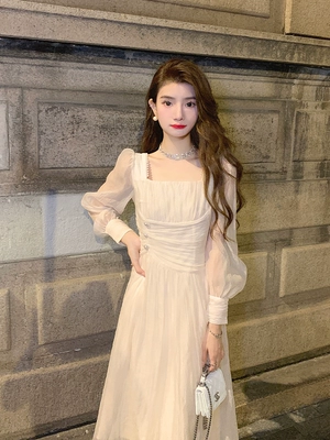 AMI NANA秋冬法式打底连衣裙长袖气质仙女裙小个子纯欲内搭长裙子