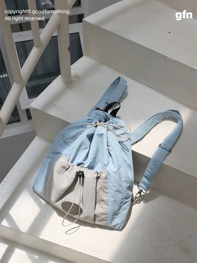 goodfornothing一无是处原创蓝灰色抽绳双肩包斜挎包背包小书包