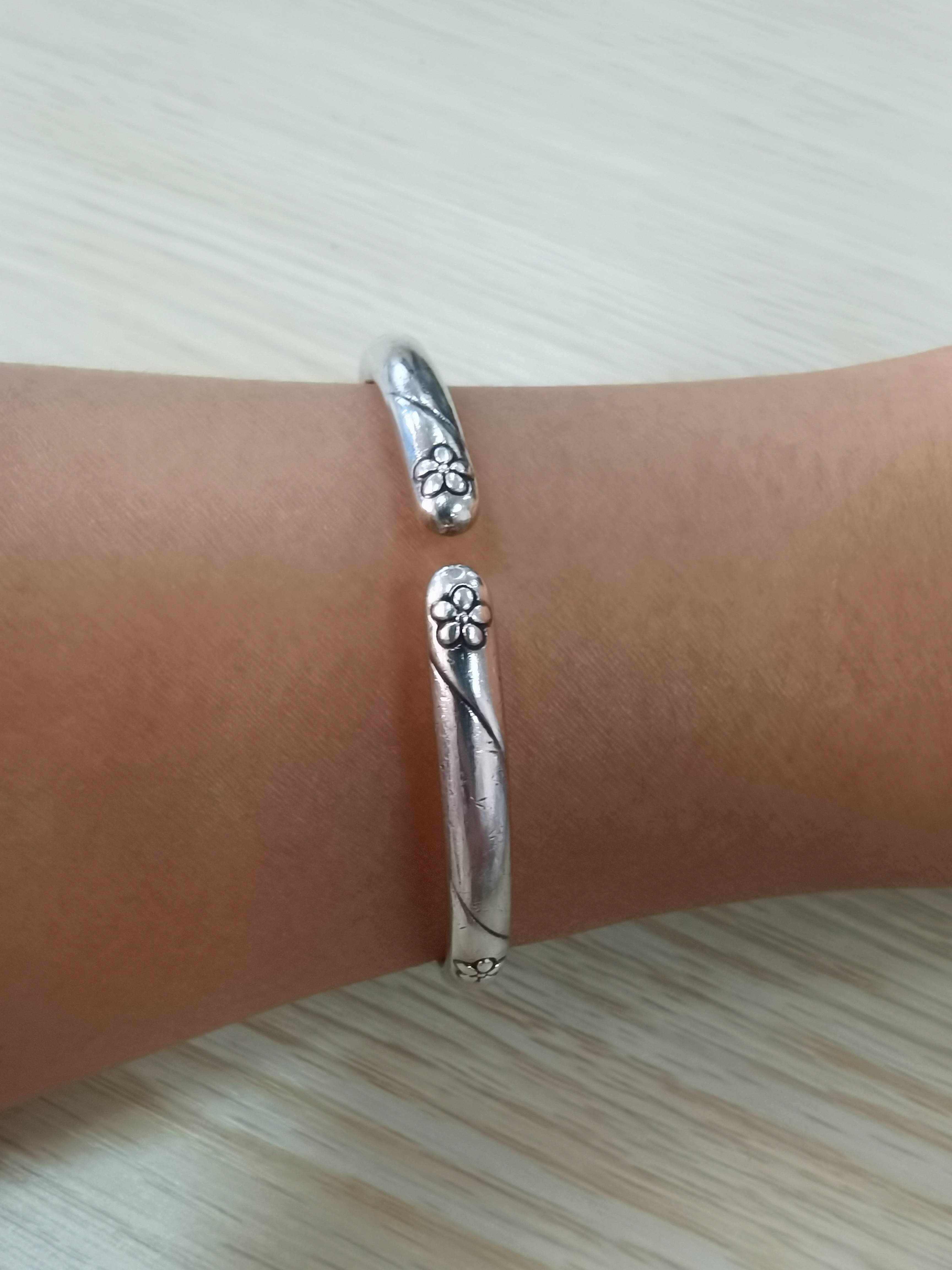2022年新款999足银精细花纹亮白手镯小众设计生日礼物
