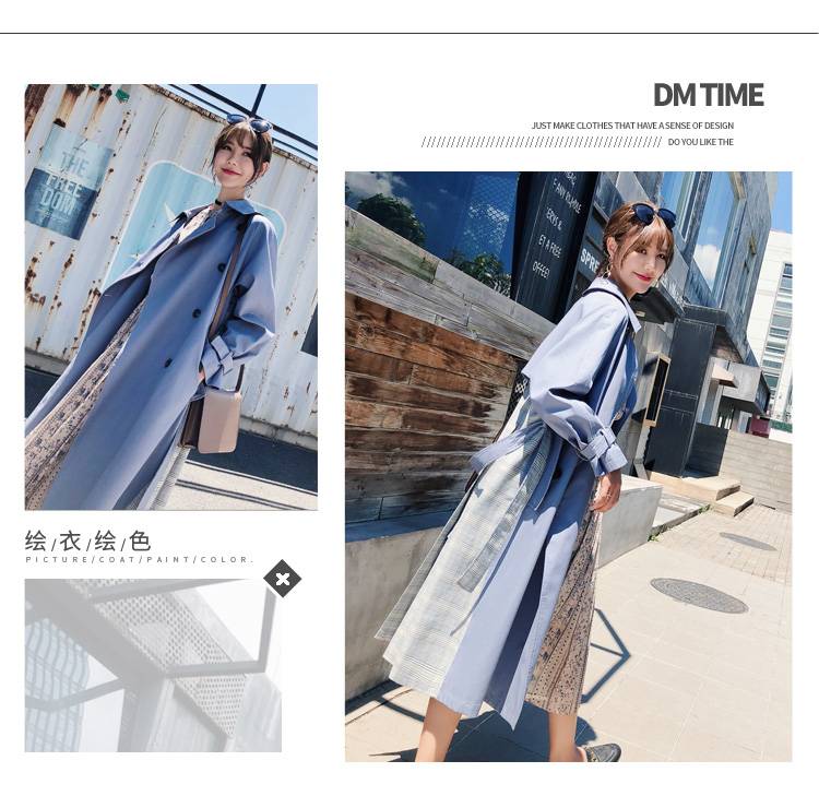 chic风衣女中长款2018新款秋装韩版宽松过膝lulu拼接格子包邮 66.00 已售:1件