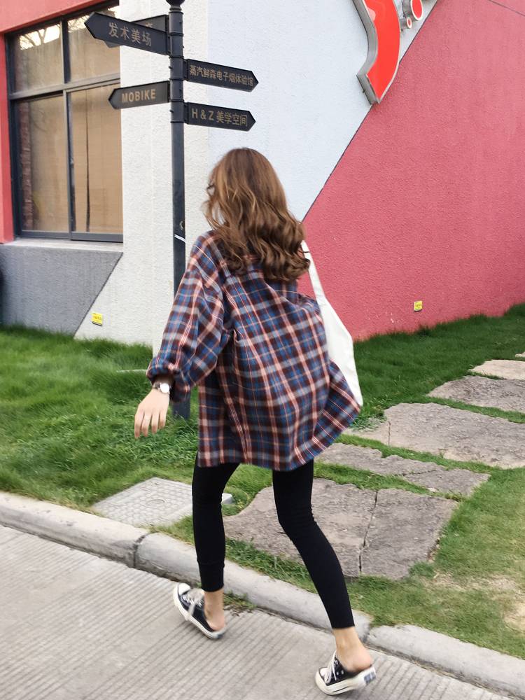 复古格子衬衫外套女2018秋季韩版学生宽松中长款长袖上衣包邮 66.00 已售:0件