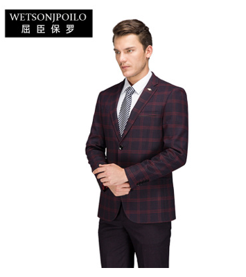 2018年新款西服套装 紫红大格 商务休闲定制西服 单排两扣西装男