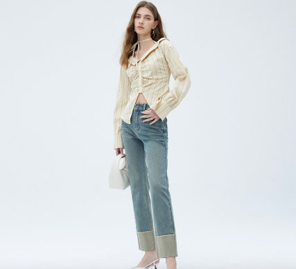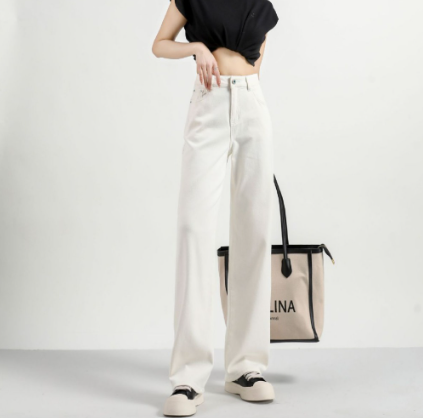 开春新款白色牛仔裤现货爆款南油网红主播高腰小阔腿女装长裤