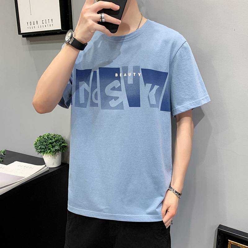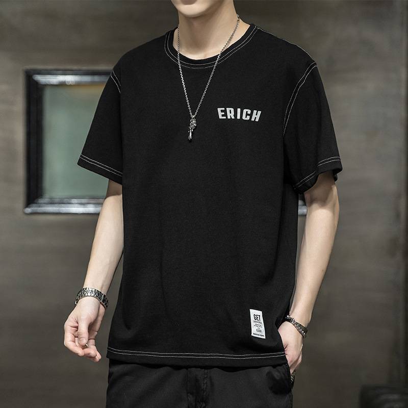 2021创意趣味青年新款夏季体士韩版时尚潮牌休闲短袖字母t恤男装