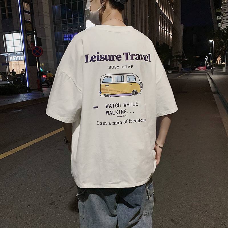 2021春季青少年夏季大码短袖印花T恤男士宽松无领不连帽卡通帅气