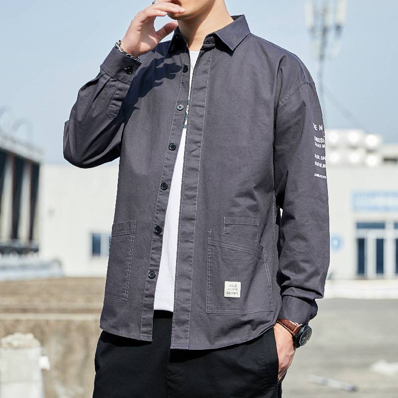 男新款纯色长袖衬衫工装韩版潮流港风春夏季宽松休闲外套男衬衣