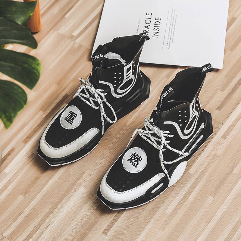 新款ins超火的鞋子国潮重燃高帮厚底板鞋休闲运动拼色男情侣鞋 69.00 已售:0件