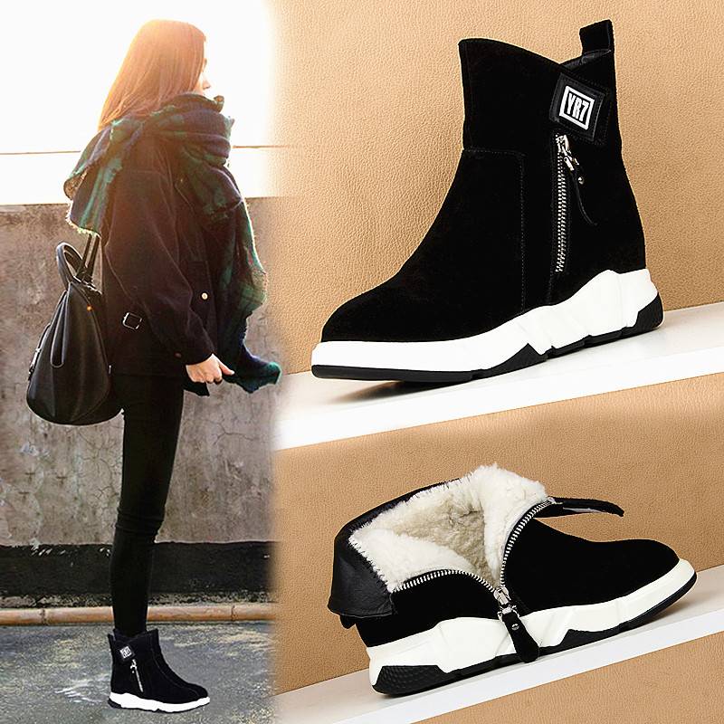 雪地靴女羊皮毛一体2018新款潮冬季真皮短靴韩版百搭加绒短筒棉鞋