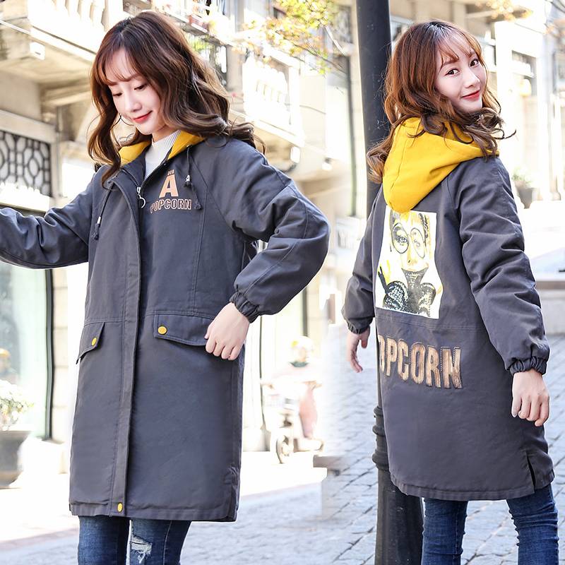 风衣女加绒2018秋冬新款时尚潮mm大码加棉加厚中长款原宿pf外套火