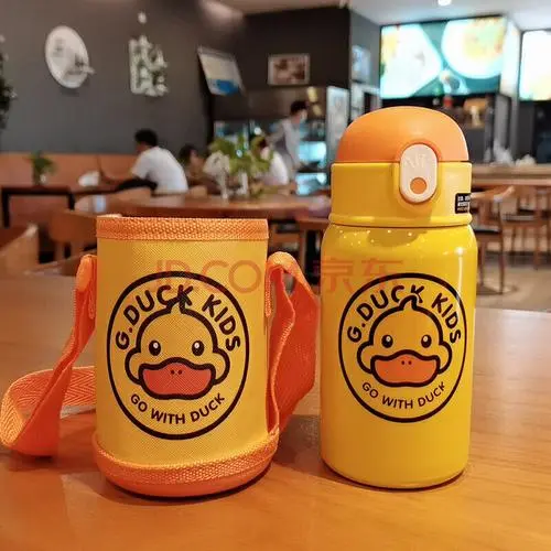 新款创意316不锈钢保温杯儿童喝水杯子双盖带吸管可爱水杯