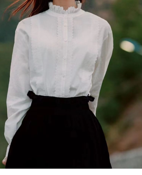 元品质BA2023早秋新款 独特别致重工刺绣上衣花边领减龄白衬衫衣