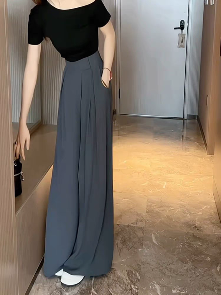 灰色西装裤裙裤女夏季2025新款高腰垂坠感休闲裤小个子拖地阔腿裤
