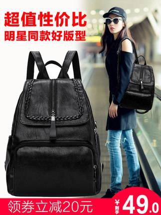 双肩包女士2018新款韩版百搭潮背包包软皮休闲时尚旅行大容量书包