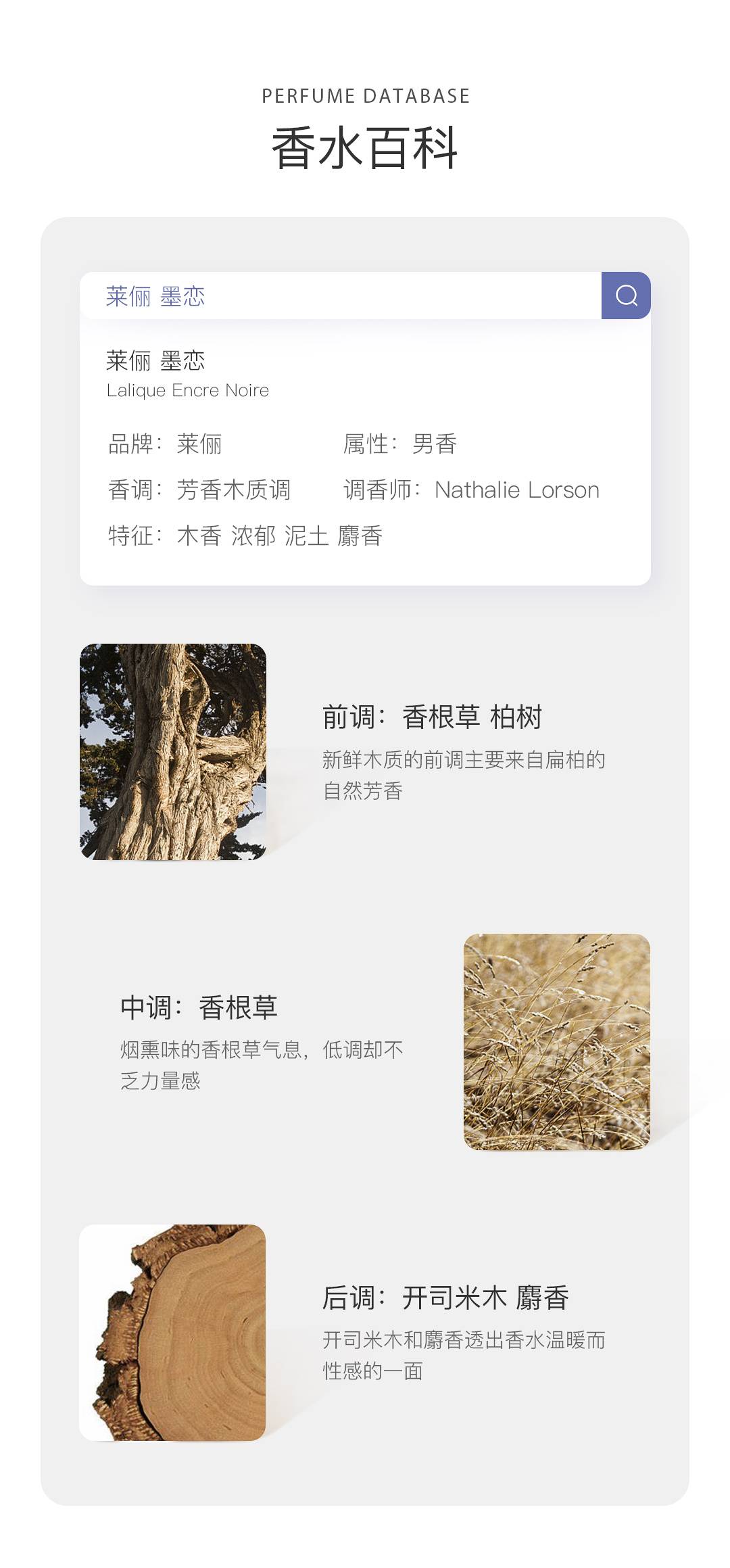 莱俪墨恋,是一只性价比超高的香根草香水。潮湿的木质彷佛把人带到了一片雨后森林,能闻到泥土、植物根茎和烟熏的味道,有种沉静内敛的气质。