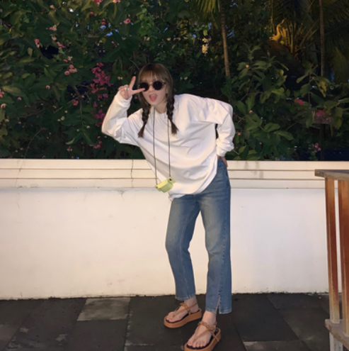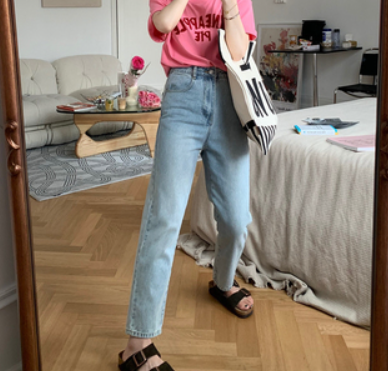 21夏新/显瘦浅色直筒小脚8分牛仔裤