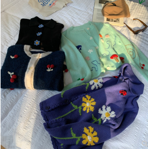 蓝陶后花园钩花多色毛衣开衫慵懒舒适系列
