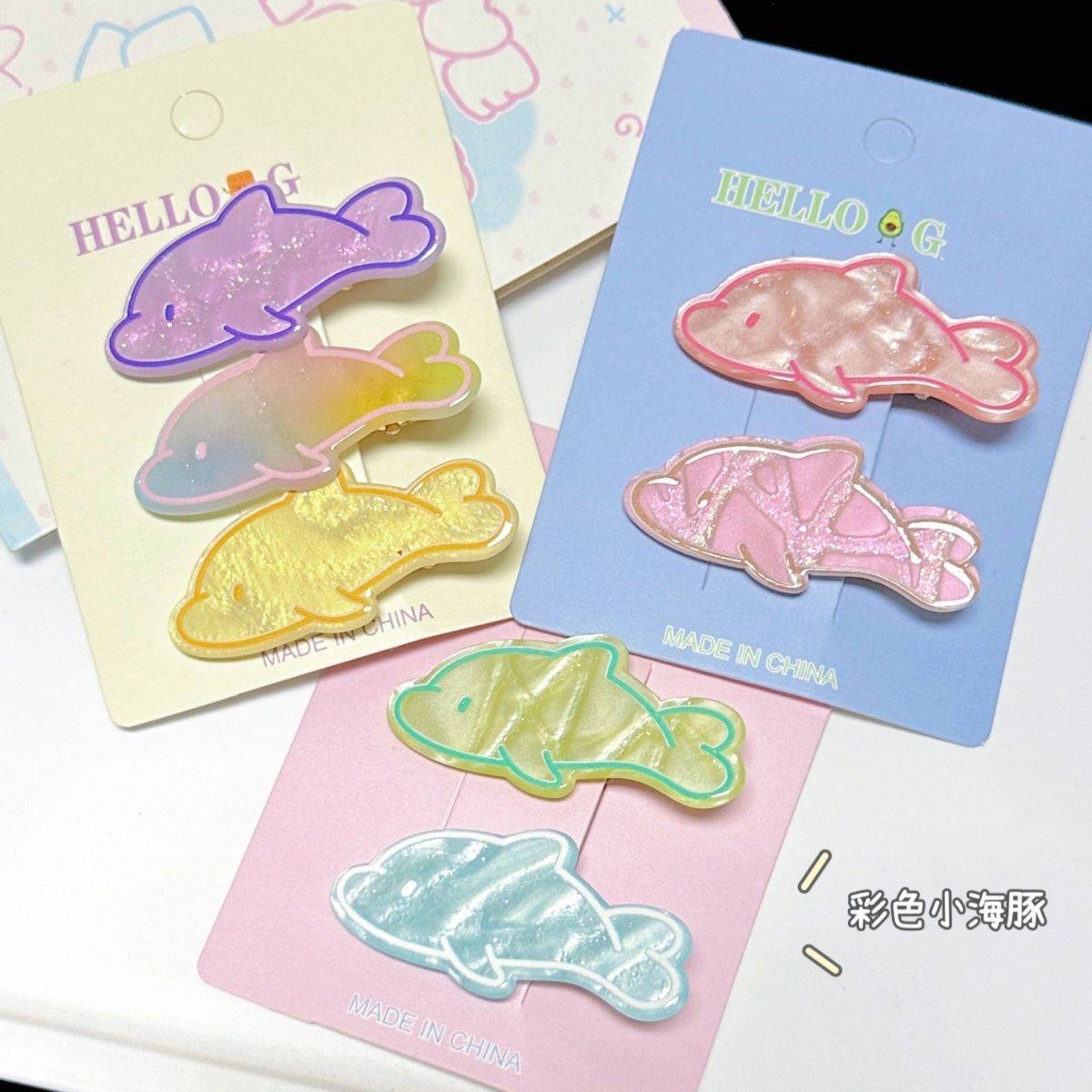 七彩小海豚发夹可爱彩色多巴胺少女心卡通刘海边夹头饰卡子鸭嘴夹 5.00 已售:0件