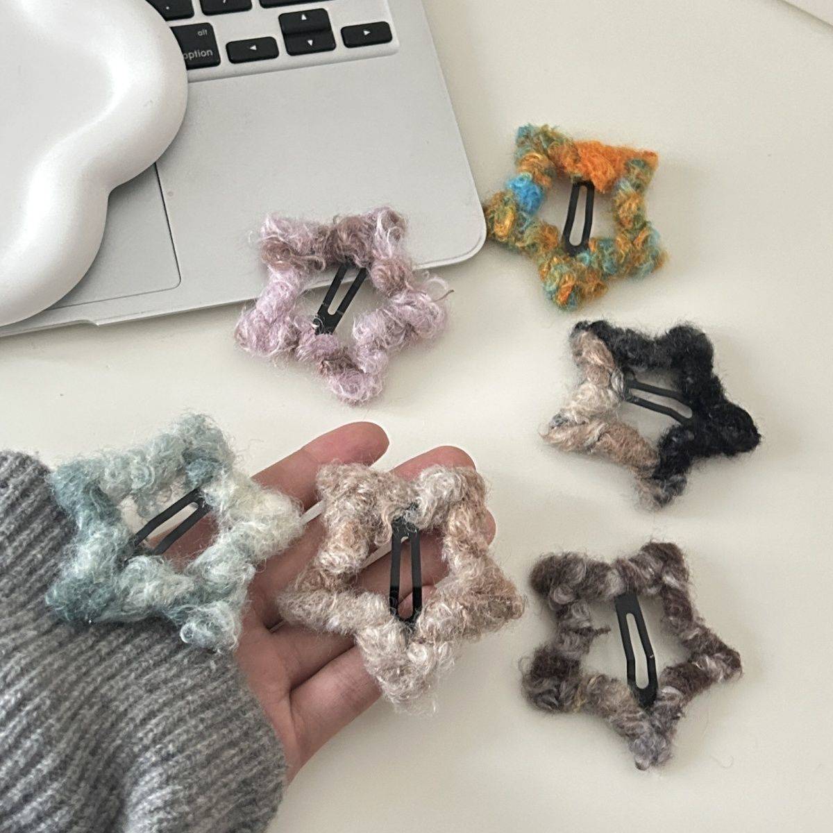 秋冬毛绒晕染水墨五角星发夹可爱BB少女侧边刘海头饰毛线发卡 5.00 已售:0件