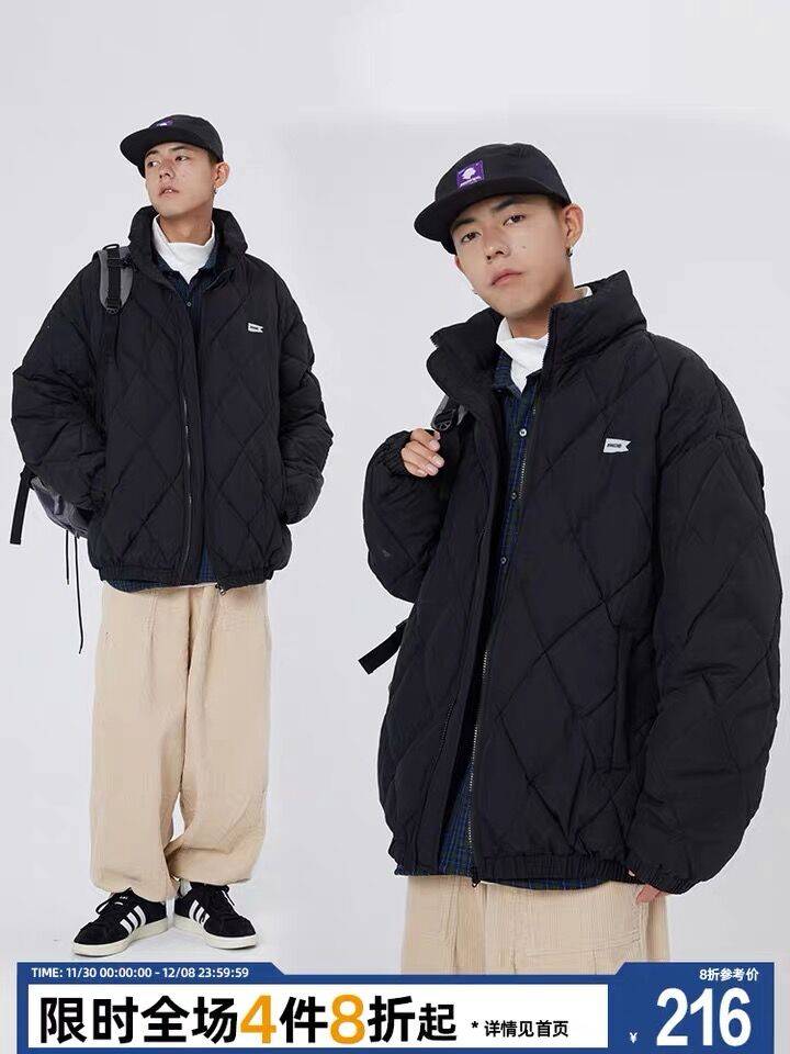 江南先生Cityboy日系金属标菱格棉服男冬季情侣装潮牌ins棉衣外套