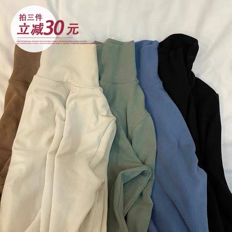EHSTORE2021秋冬打底衫女螺纹坑条半高领多色保暖内搭打底上衣