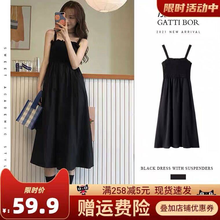 胖mm大码2021年新款潮夏季炸街黑色吊带连衣裙子女装早秋chic气质