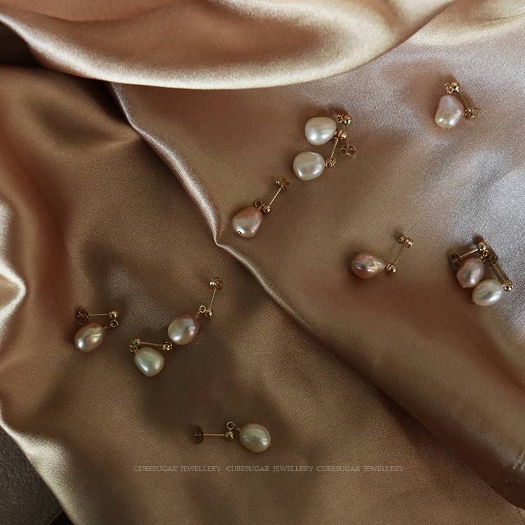 可碰水美国14K包金天然巴洛克异形珍珠耳钉气质百搭耳饰