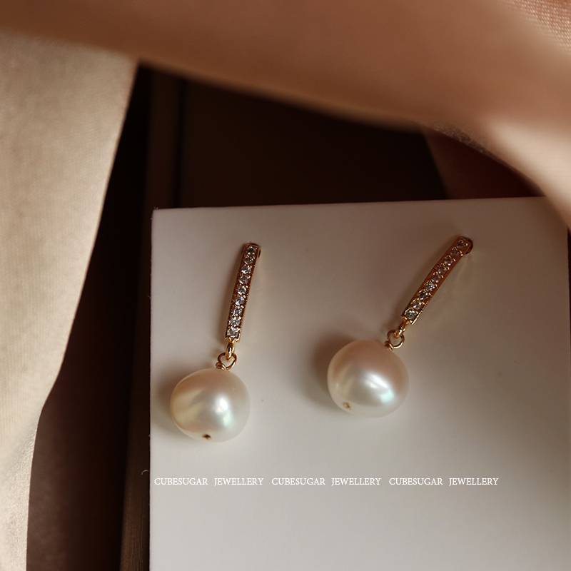 镀14K金淡水珍珠吊坠925银针耳环气质温柔日韩耳环耳饰