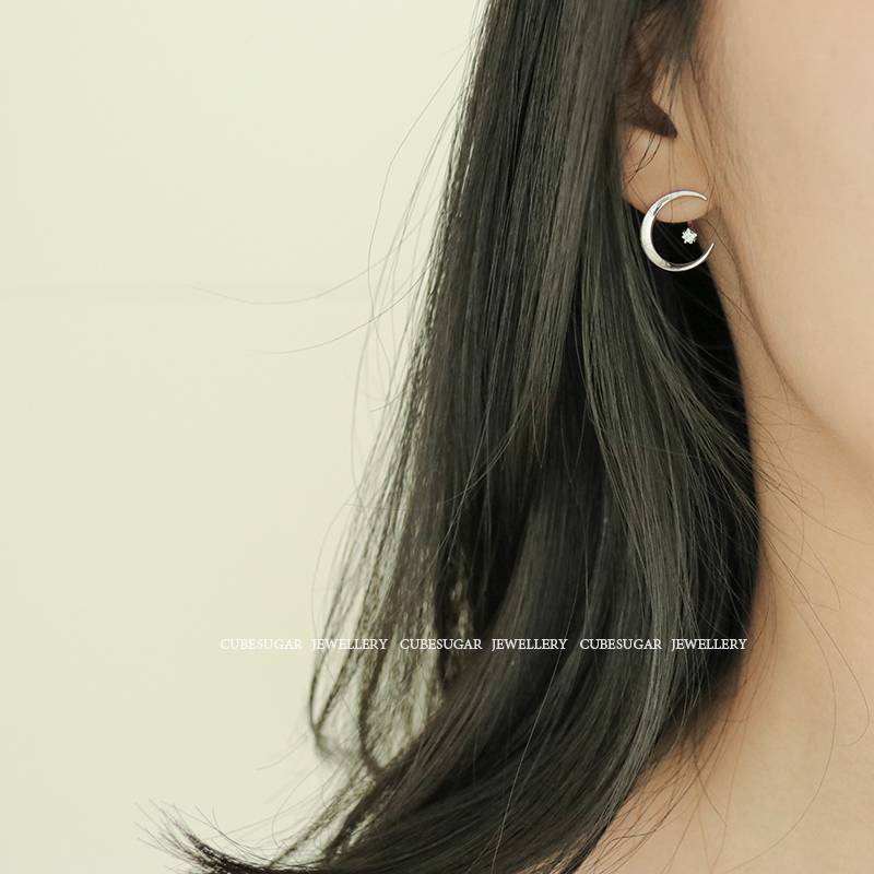 通体925纯银月亮锆石耳钉可拆分设计简约个性日韩耳环