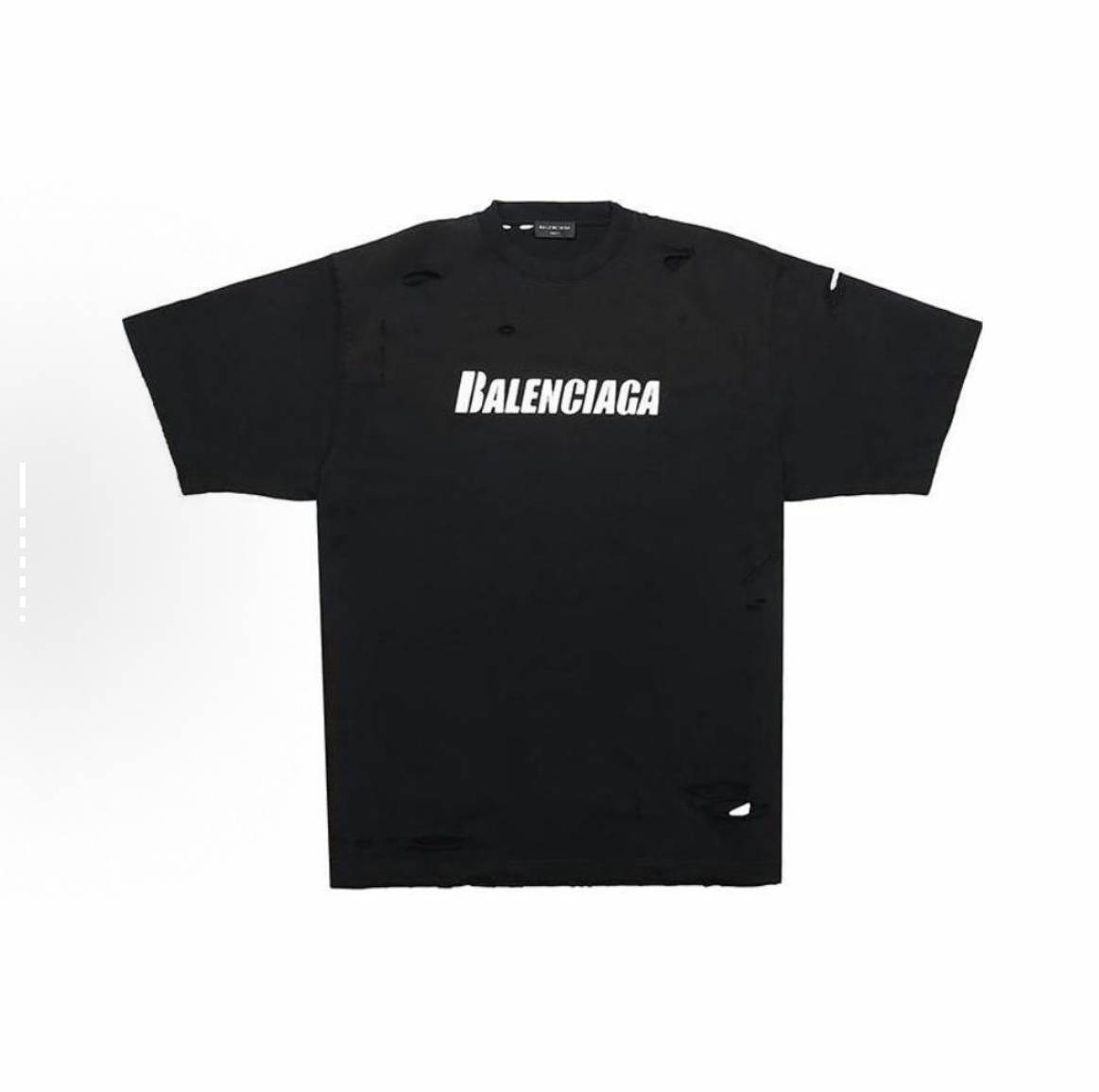 Balencigaga巴黎四家 Caps 字母印花图案破洞圆领短袖T恤 常规版型 男款 黑色