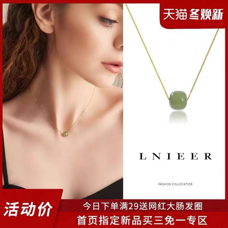 925纯银转运珠玉石项链女夏季轻奢小众设计感简约复古高级锁骨链