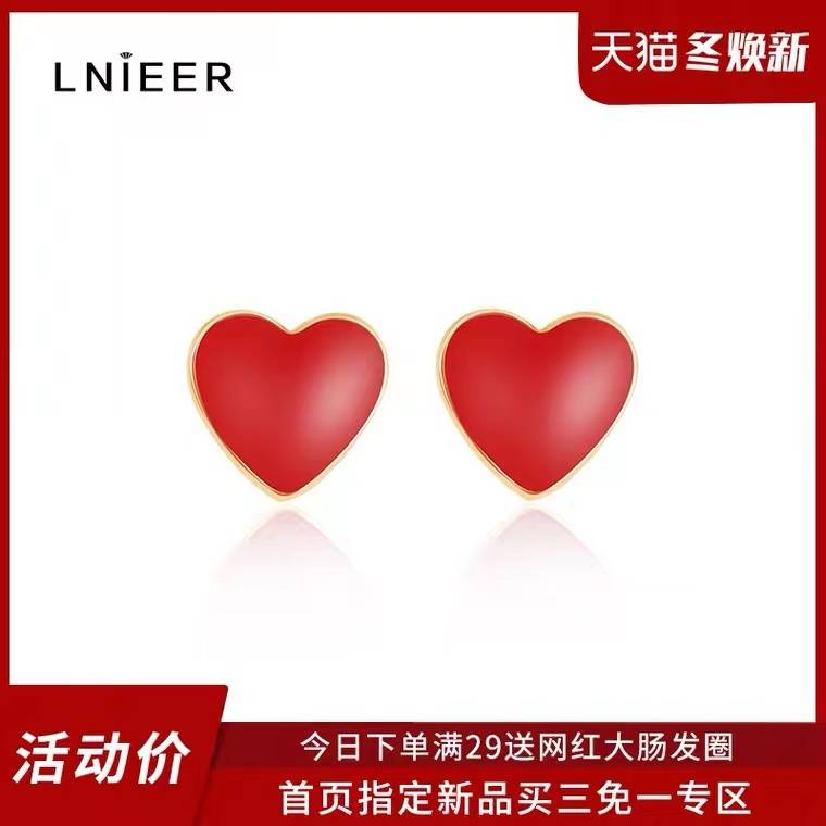 999纯银小红心耳钉女爱心气质耳饰2020新款潮简约小桃心红色耳环