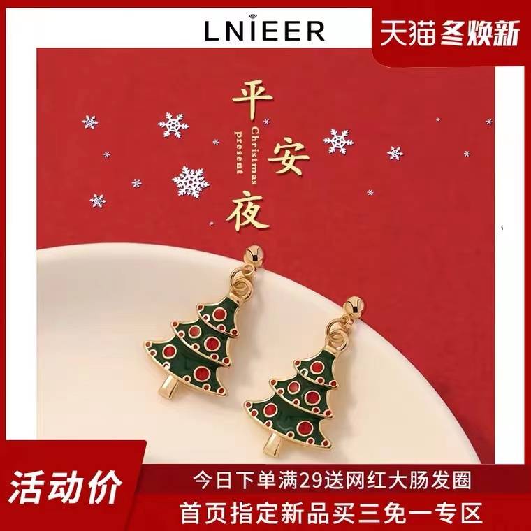 圣诞树耳钉女秋冬款925银针小众设计感耳环睡觉不用摘养耳洞饰品