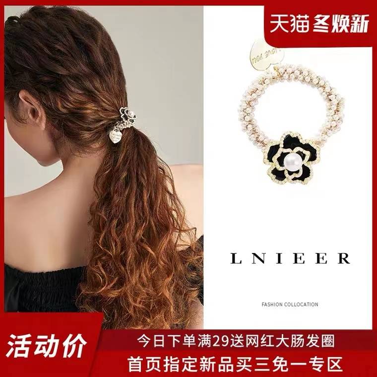 法式经典山茶花发圈女高级感发饰头饰发绳清新小香风简约质感皮筋