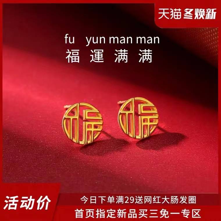 925纯银福耳钉女适合过年的耳环2021年新款潮新年喜庆耳饰中国风