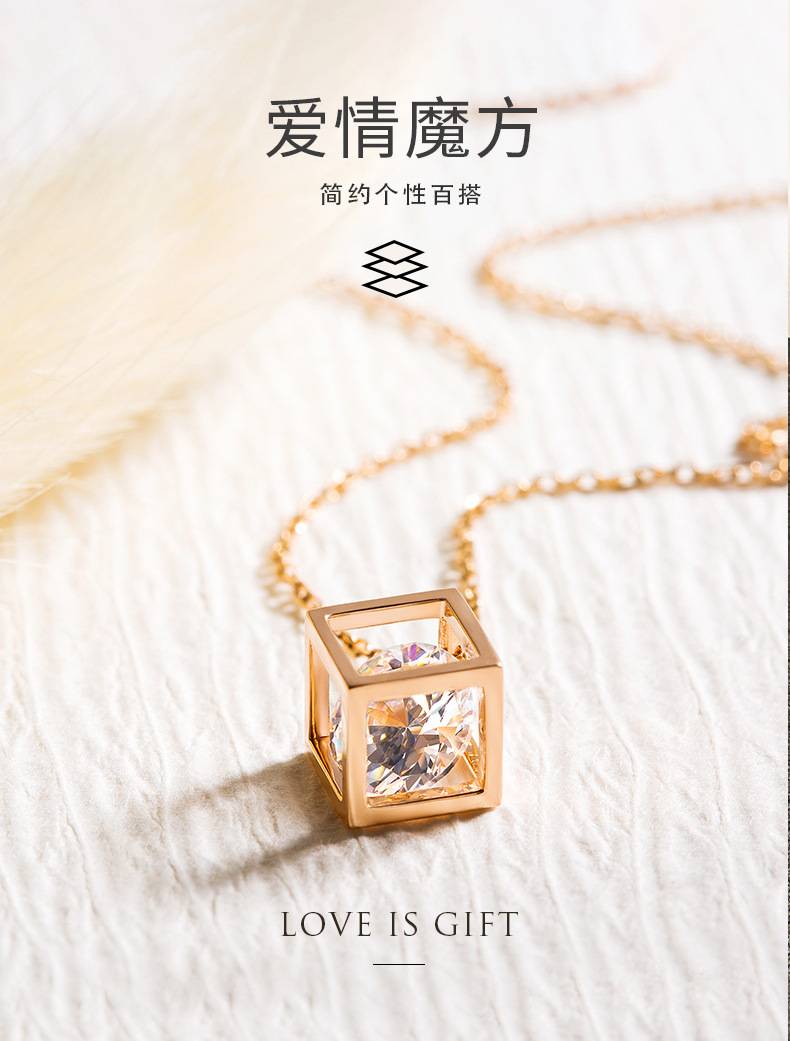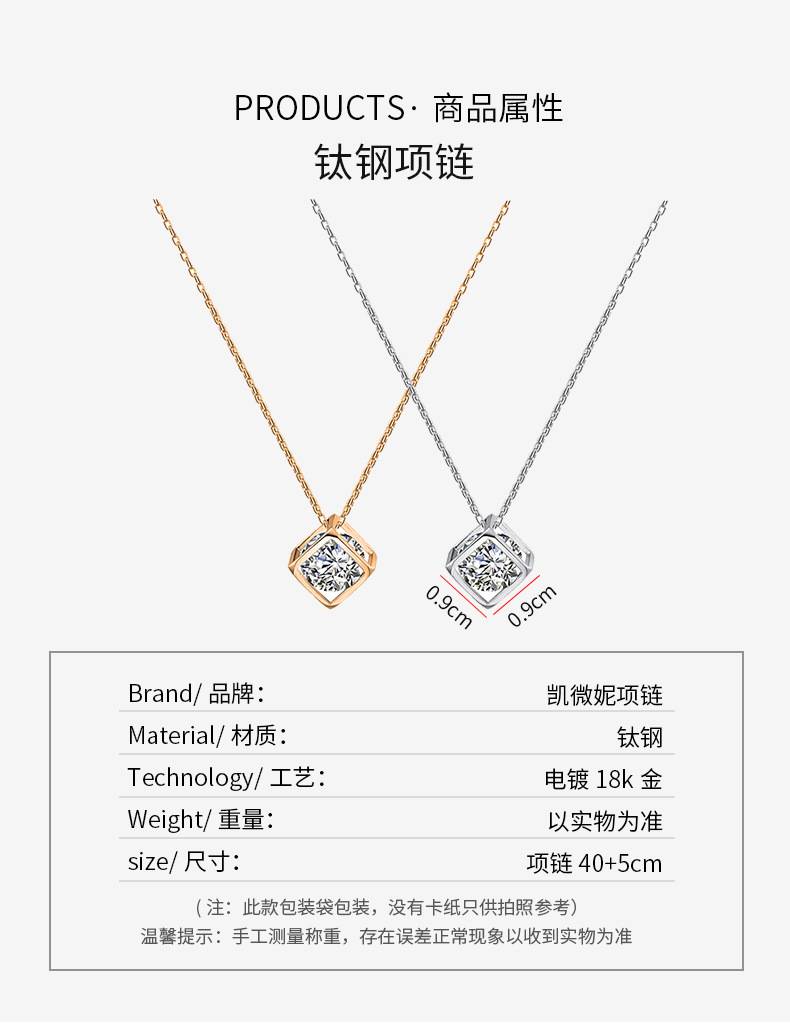 欧美钻石项链女方形太钢几何气质欧美简约小众设计感吊坠饰品首