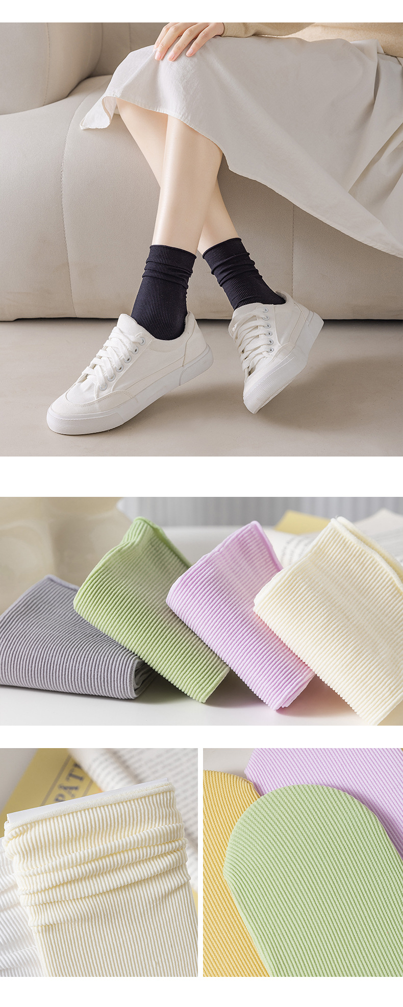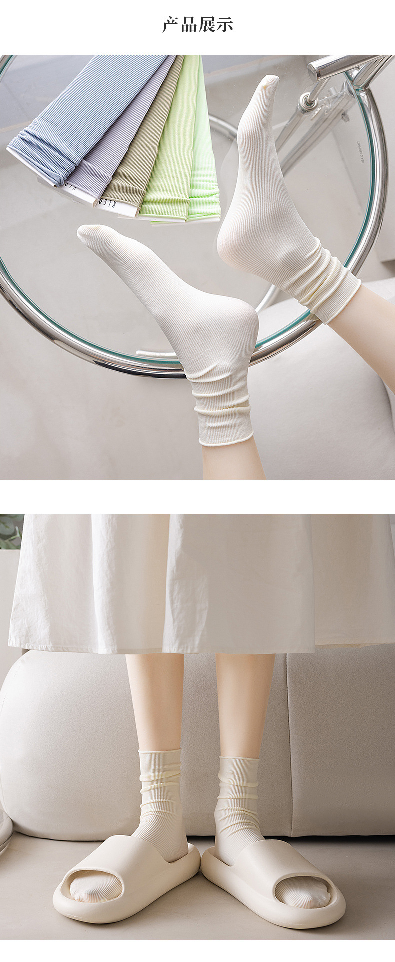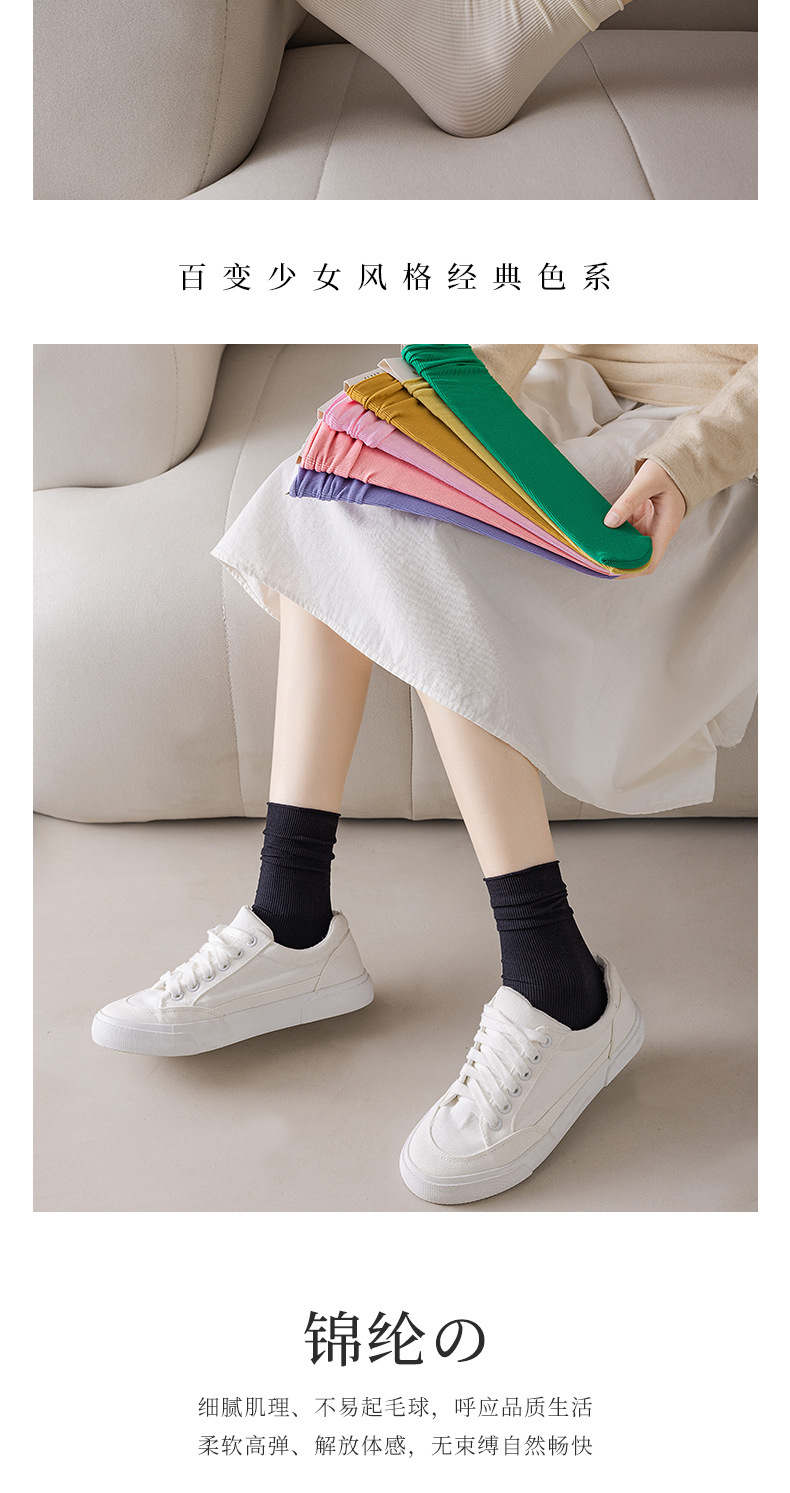 天鹅绒袜子女生夏季冰冰袜纯色堆堆袜薄款中筒袜冰丝袜子多巴胺色