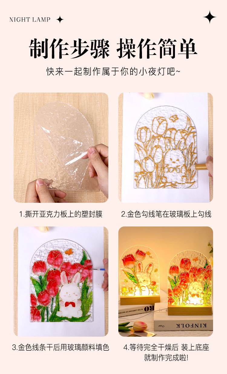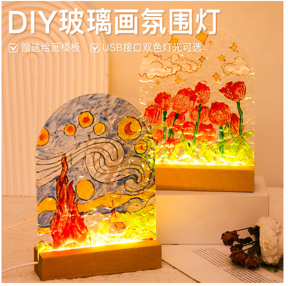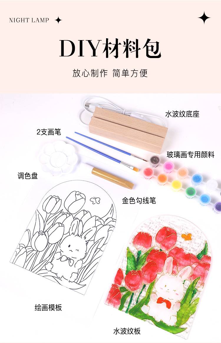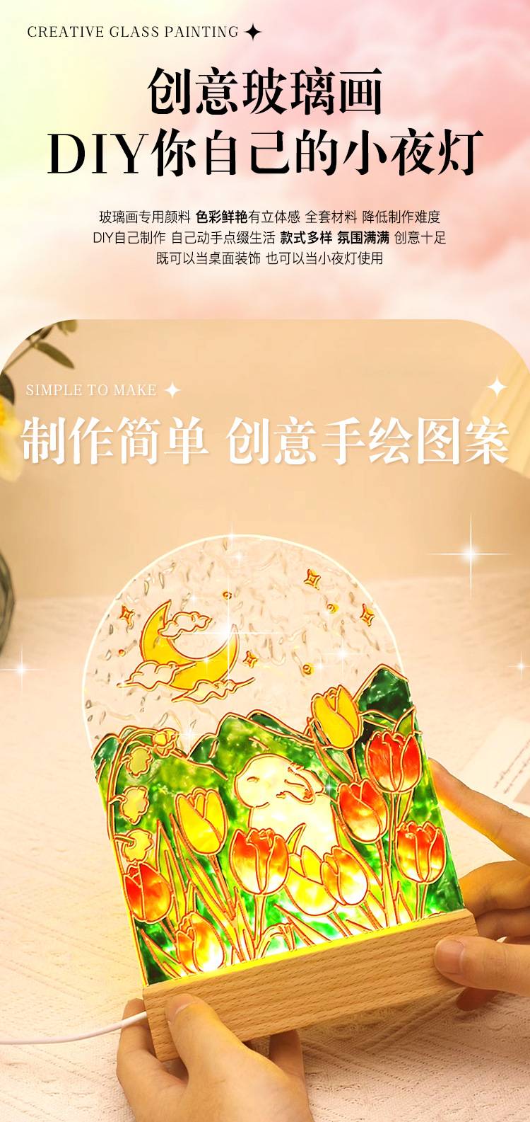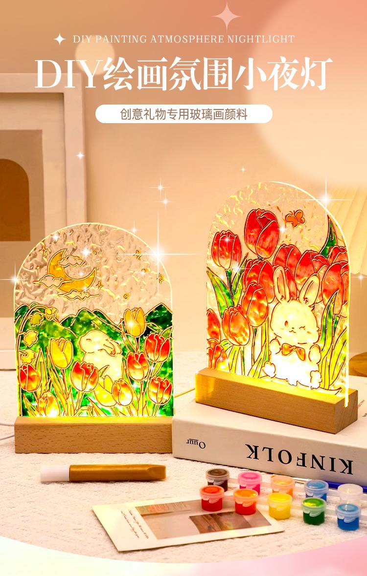 女神节礼物亚克力小夜灯儿童手绘diy玻璃画手工材料包创意玻璃画