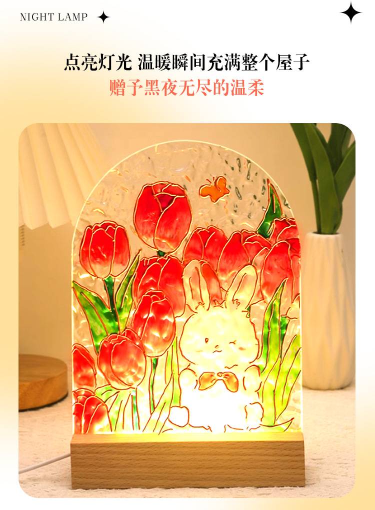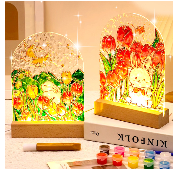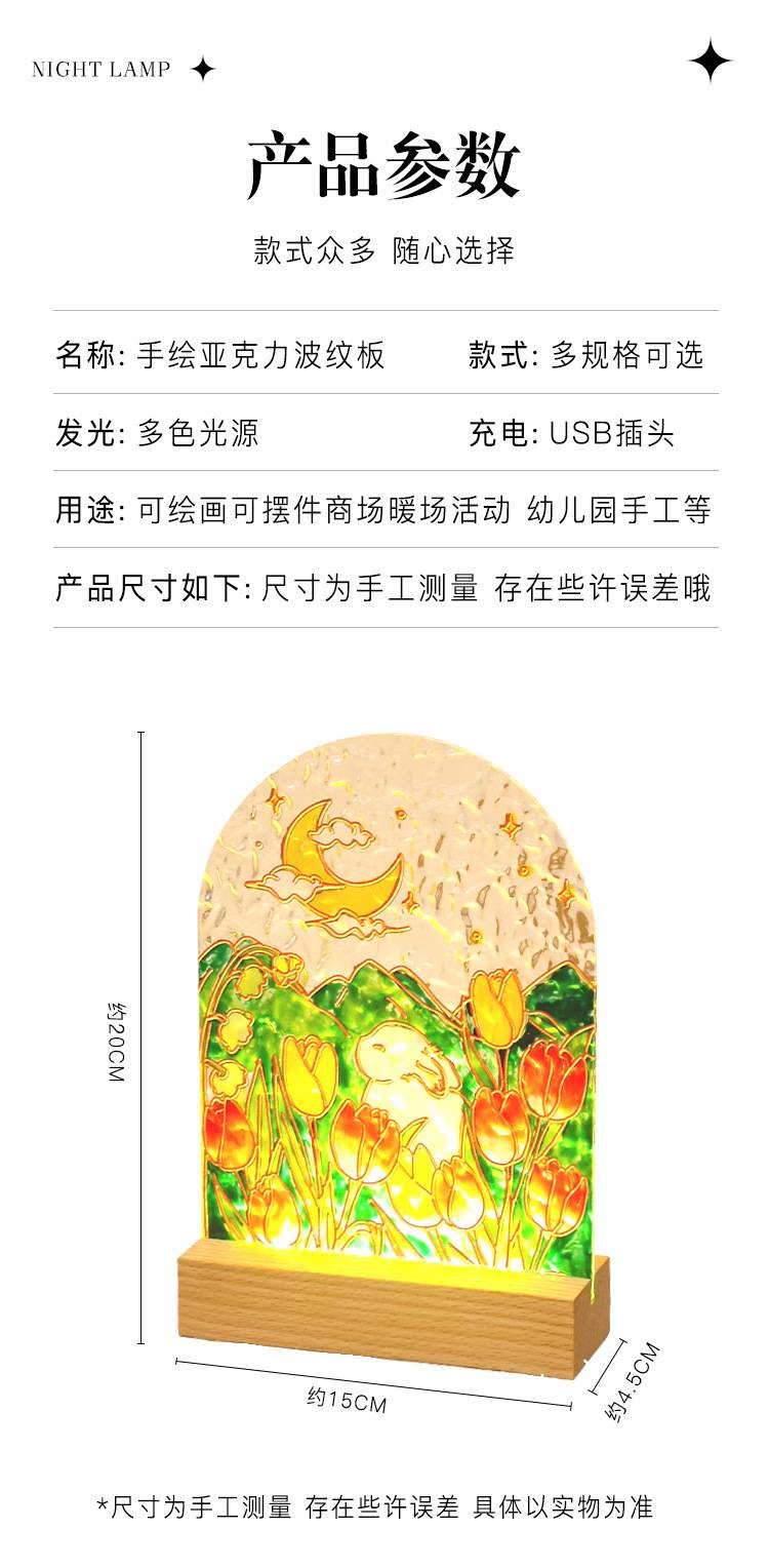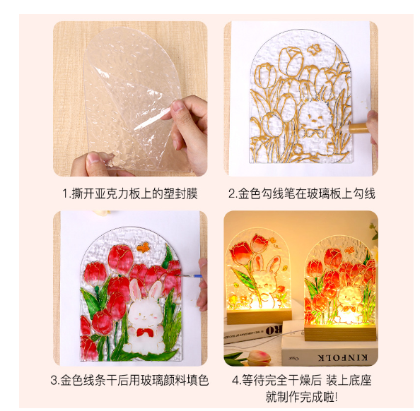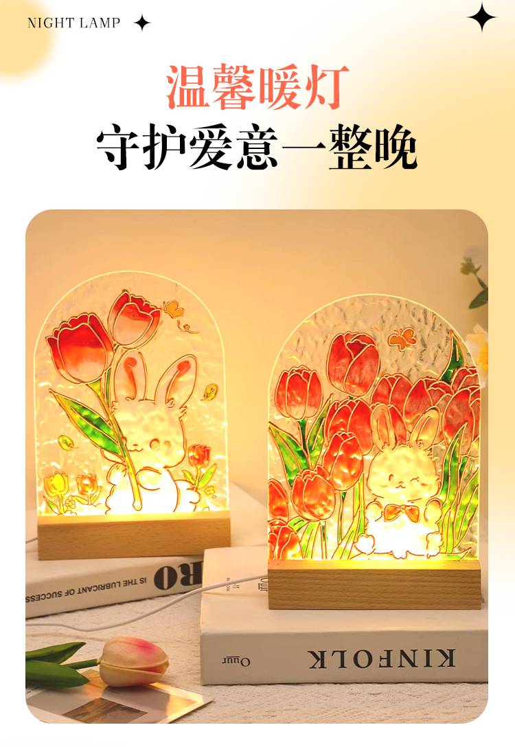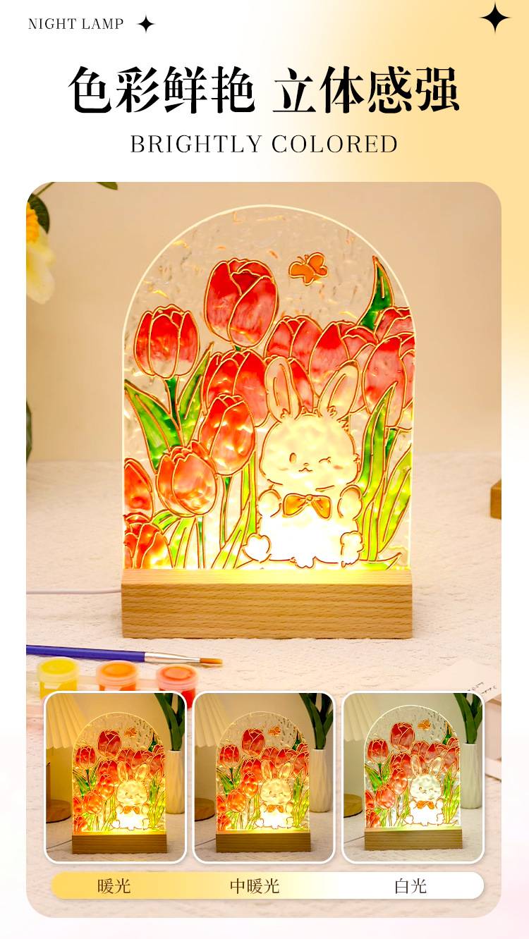 女神节礼物亚克力小夜灯儿童手绘diy玻璃画手工材料包创意玻璃画