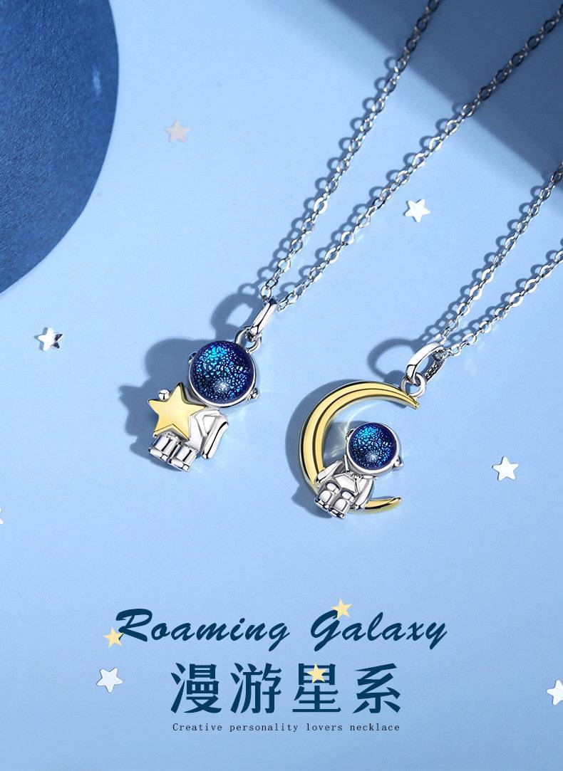新款宇航员纯银情侣项链女925简约轻奢小众吊坠520礼物女友锁骨链