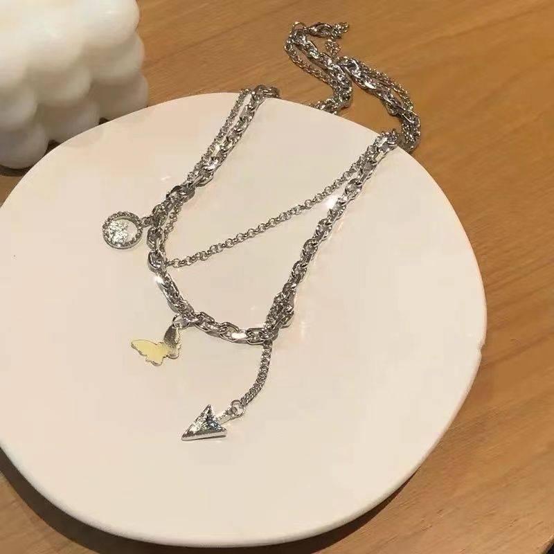 蝴蝶双层ins冷淡风潮酷项链女辣妹锁骨链2021年轻奢小众新款配饰