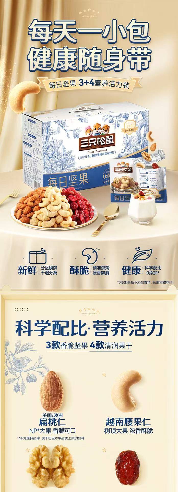 选择三只松鼠坚果,就是选择美味与健康的双重享受。快来选购,让这些萌趣又美味的坚果,陪伴您度过每一个欢乐、健康的时刻,开启属于您的美好零食时光。