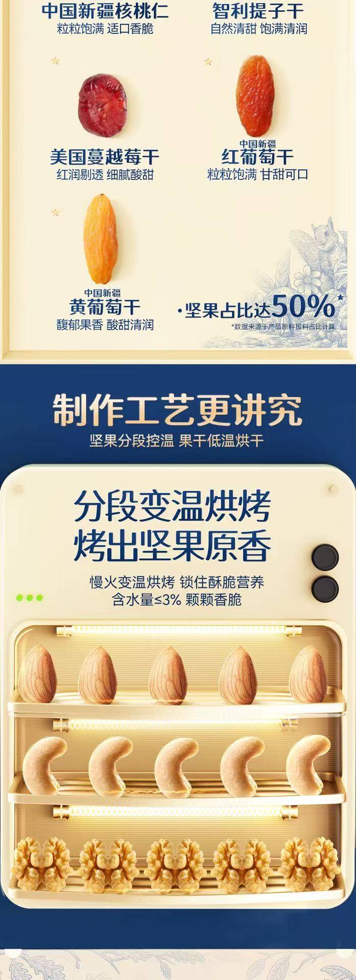 三只松鼠对原料的挑选极为严苛,足迹遍布全球优质坚果产地。从美国加州饱满的巴旦木,到土耳其香气浓郁的榛子,再到越南颗粒圆润的腰果,每一颗坚果都源自最适宜的生长环境,确保品质上乘。这些精选而来的坚果,在三只松鼠现代化工厂中,历经多道精细工序,严格遵循质量把控标准,只为呈现给您最纯粹的美味。