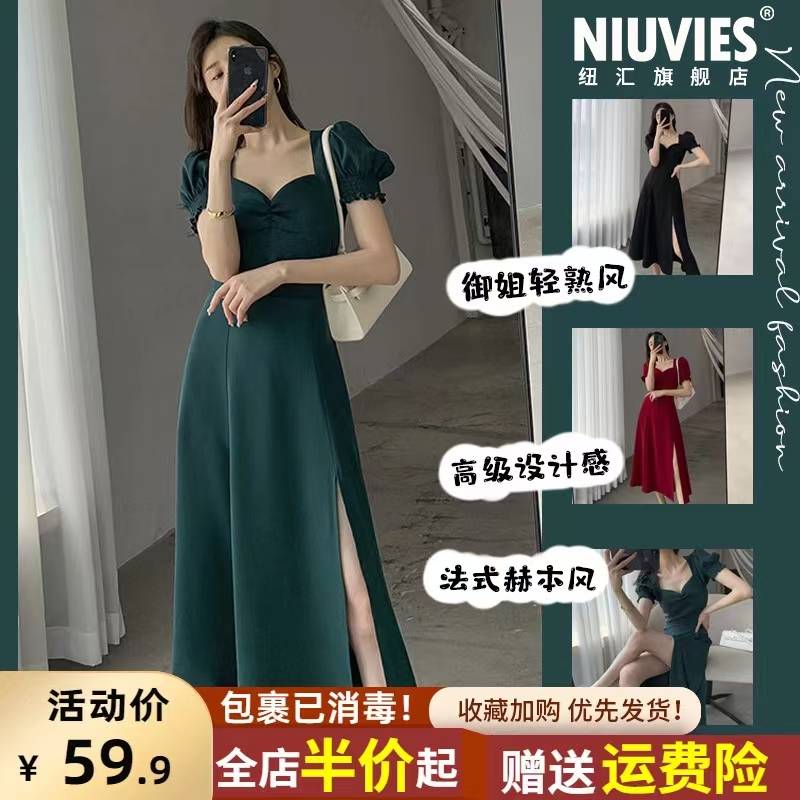 2022新款气质法式复古高级感开叉连衣裙子女夏季设计感小众长裙