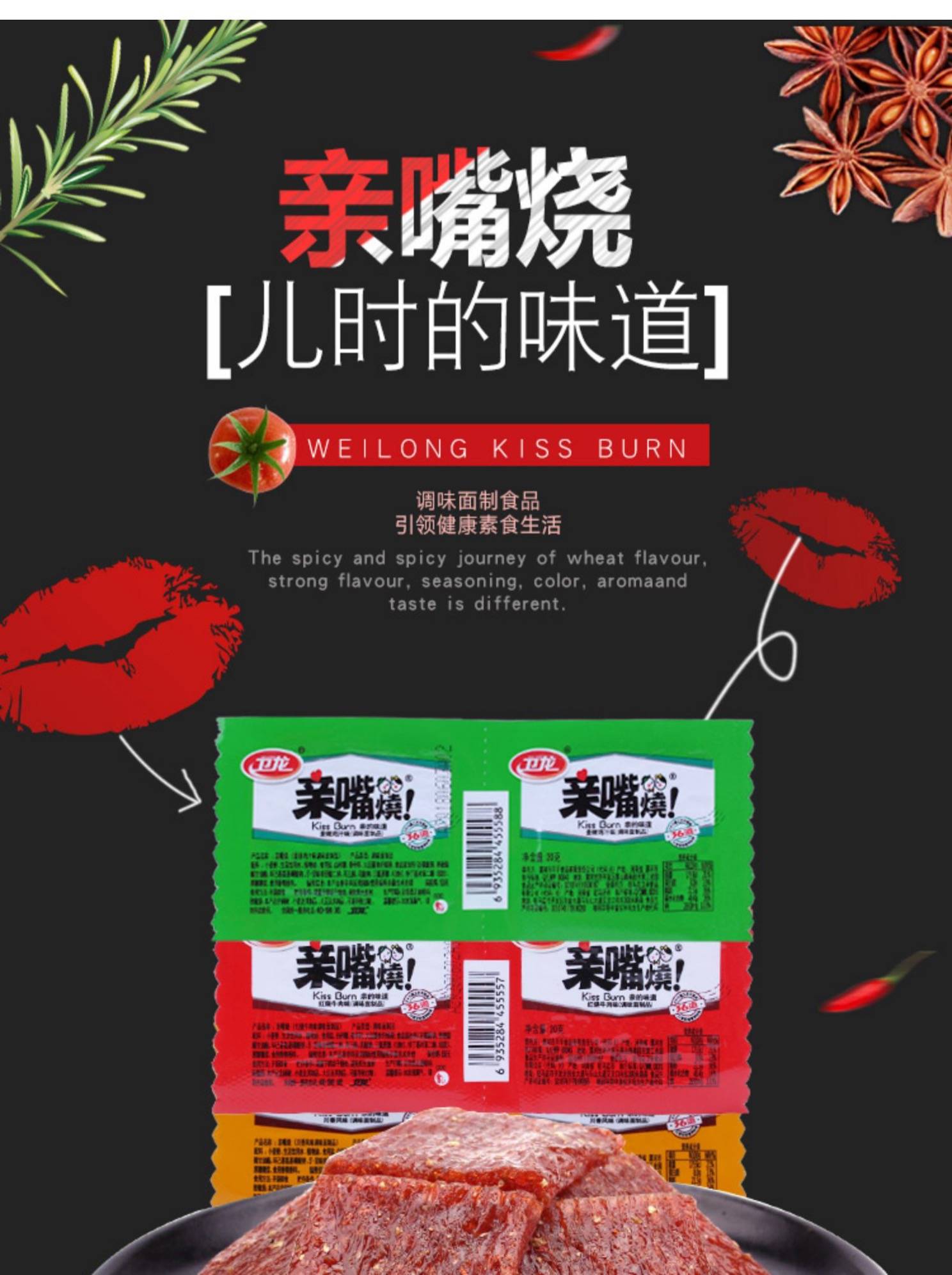 卫龙亲嘴烧辣条麻辣零食红烧牛肉辣味面筋素食学校便利休闲食品