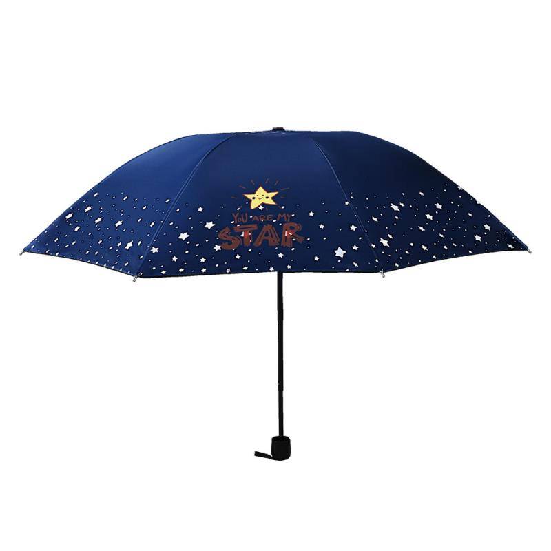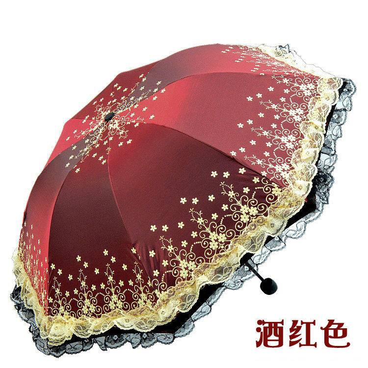 女王防晒神器 双花边变色闪光加厚黑胶女生防晒伞三折晴雨两用伞