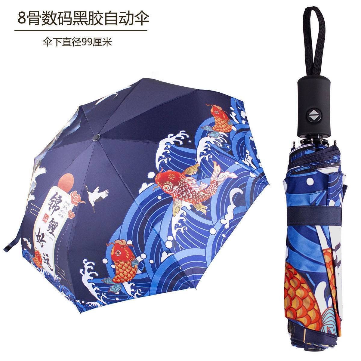 中国风 国潮风 锦鲤好运雨伞 黑胶伞防晒折叠伞 数码热转印晴雨伞