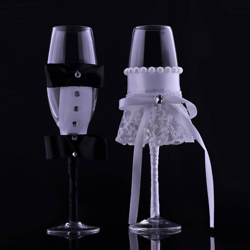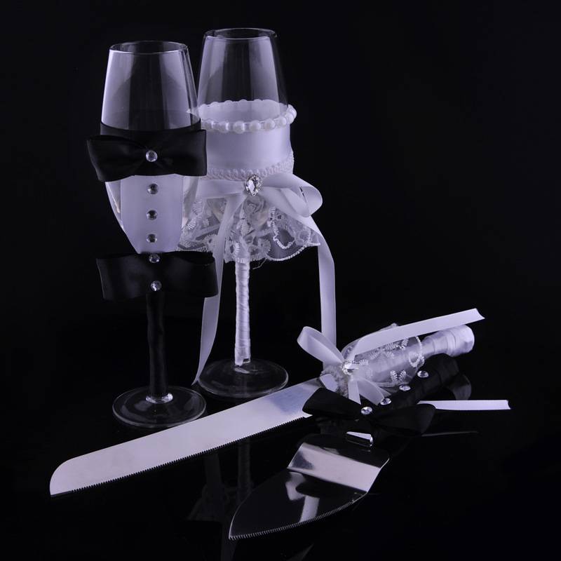 欧美新品婚庆透明玻璃酒杯礼盒套装西式婚礼高脚杯香槟杯蛋糕刀叉