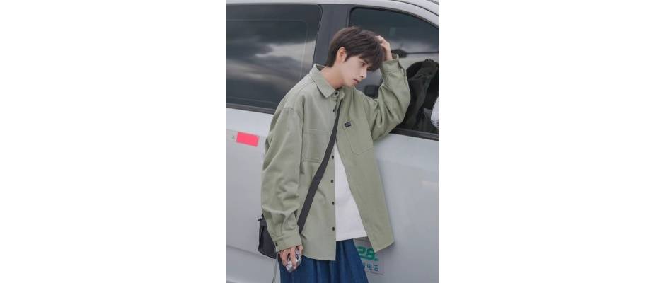 港仔文艺男黑色工装长袖衬衫男春季休闲男生内搭衬衣男装外套男款